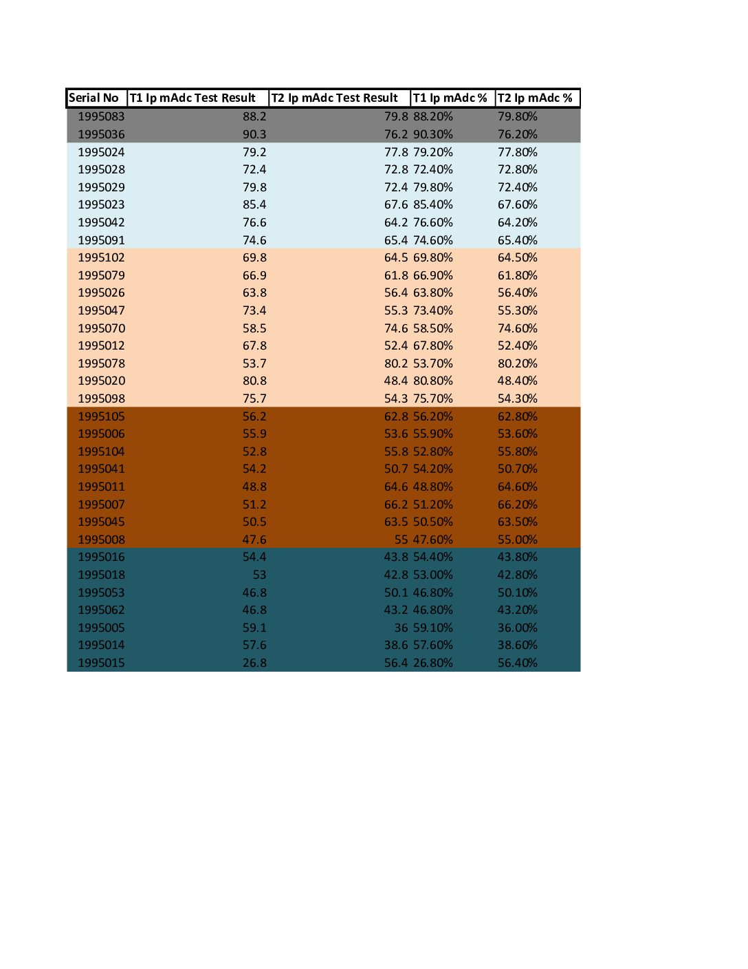 | 1995083 | Triode 1 | Plate Current (Ip) | 114.7 | 88.2% | Golden Grade |